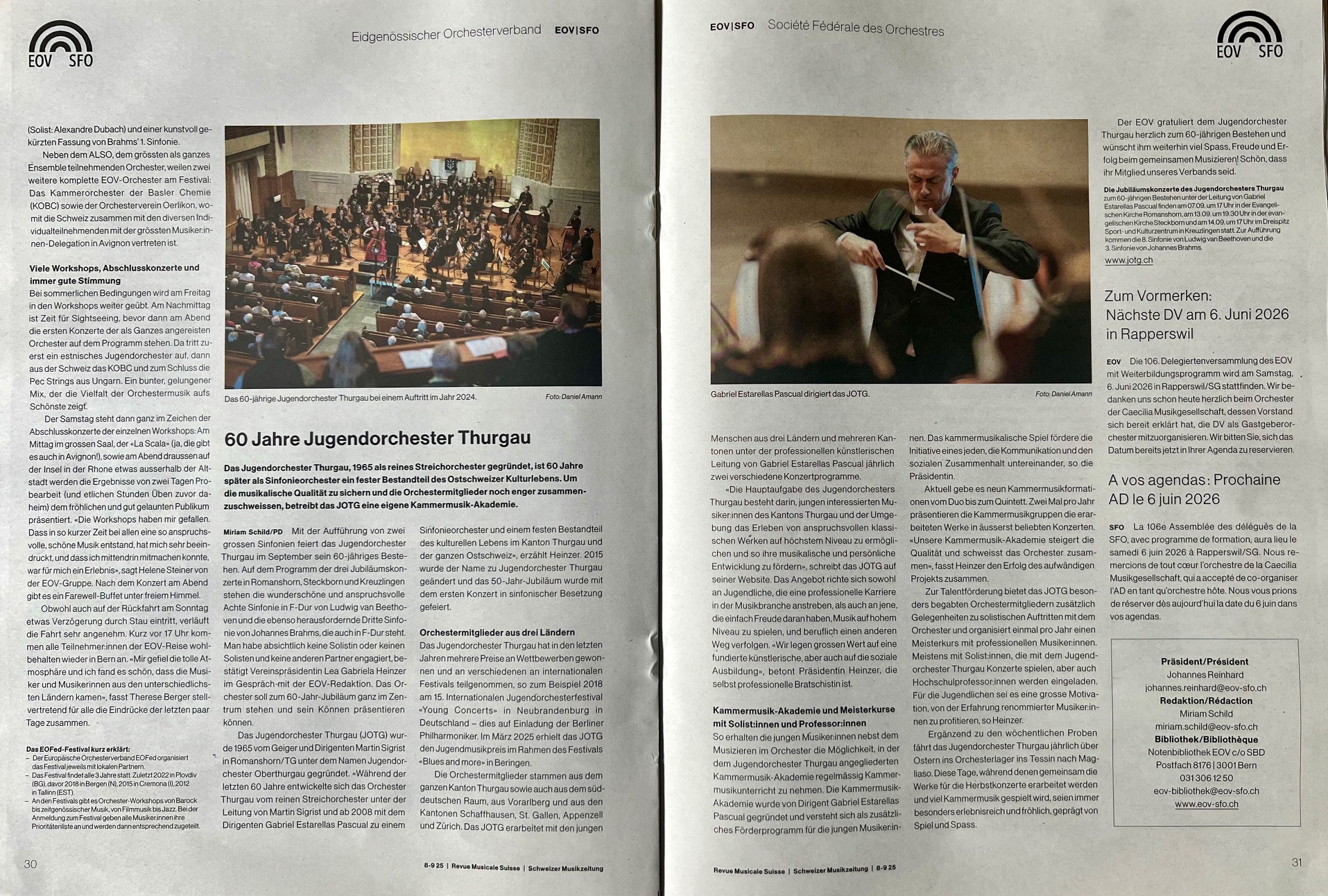 Das Jugendorchester Thurgau, 1965 als reines Streichorchester gegründet, ist heute als Sinfonieorchester ein fester Bestandteil des Ostschweizer Kulturlebens. Um die musikalische Qualität zu sichern und die Orchestermitglieder noch enger zusammenzuschweissen, betreibt das 60-jährige JOTG eine eigene Kammermusik-Akademie. LINK MUSIKZEITUNG.CH